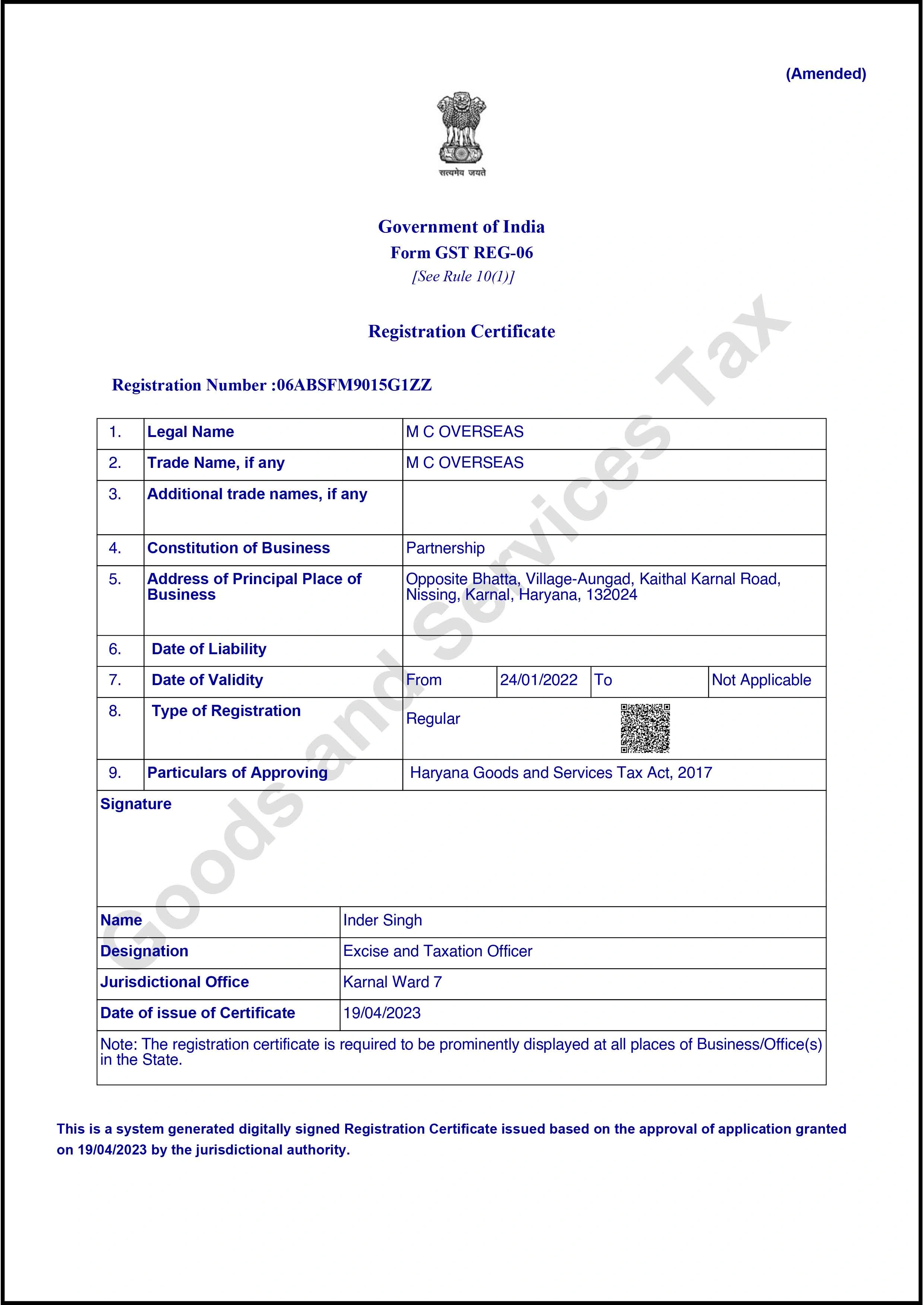 SCO 535, NEW GRAIN MARKET KARNAL, HARYANA, INDIA